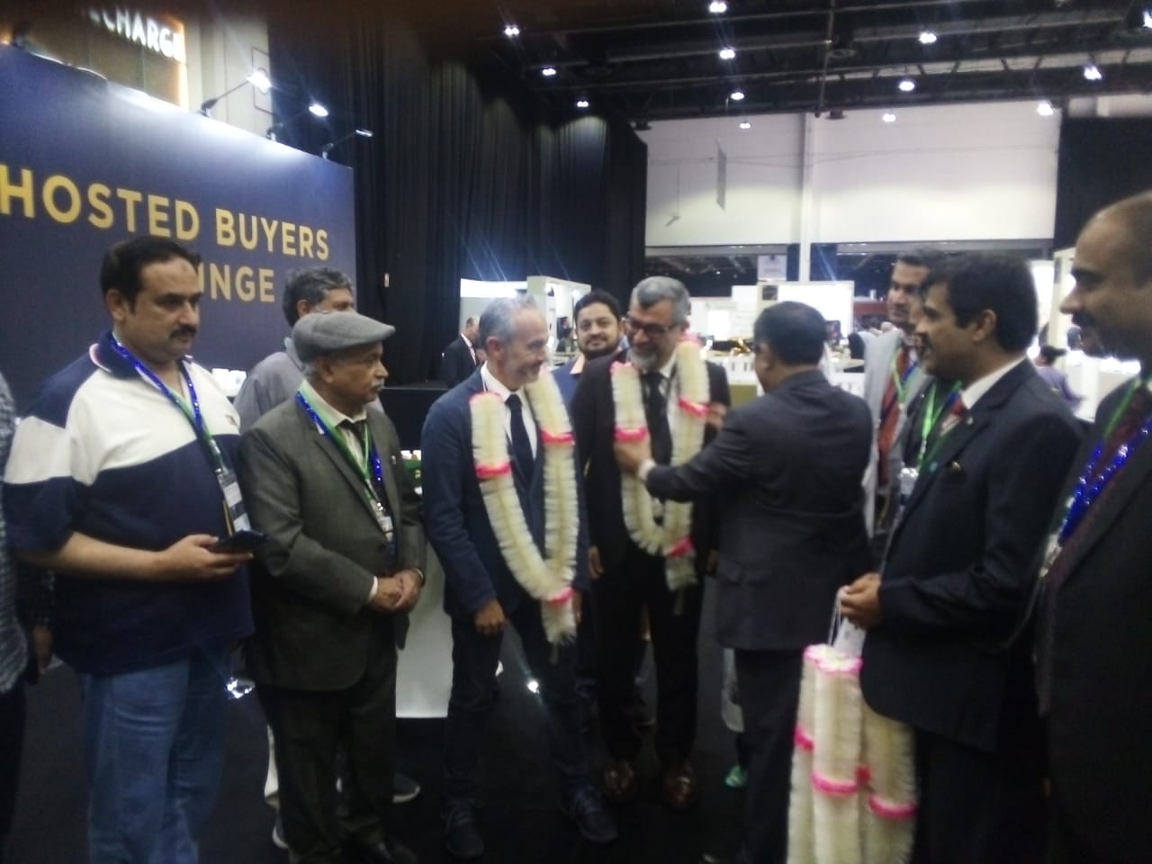 New Show Director Mr. Daniele Villa and Mr. Ashish Sakhardande Marketing Manager VOD Dubai welcomed the delegation members at the exhibition and at fashion shows held during the four days event. Members were given full protocol and facilities including free of cost three night stay in one of the lavish hotels of Dubai, Ibis One Central which was at the walking distance from the exhibition.