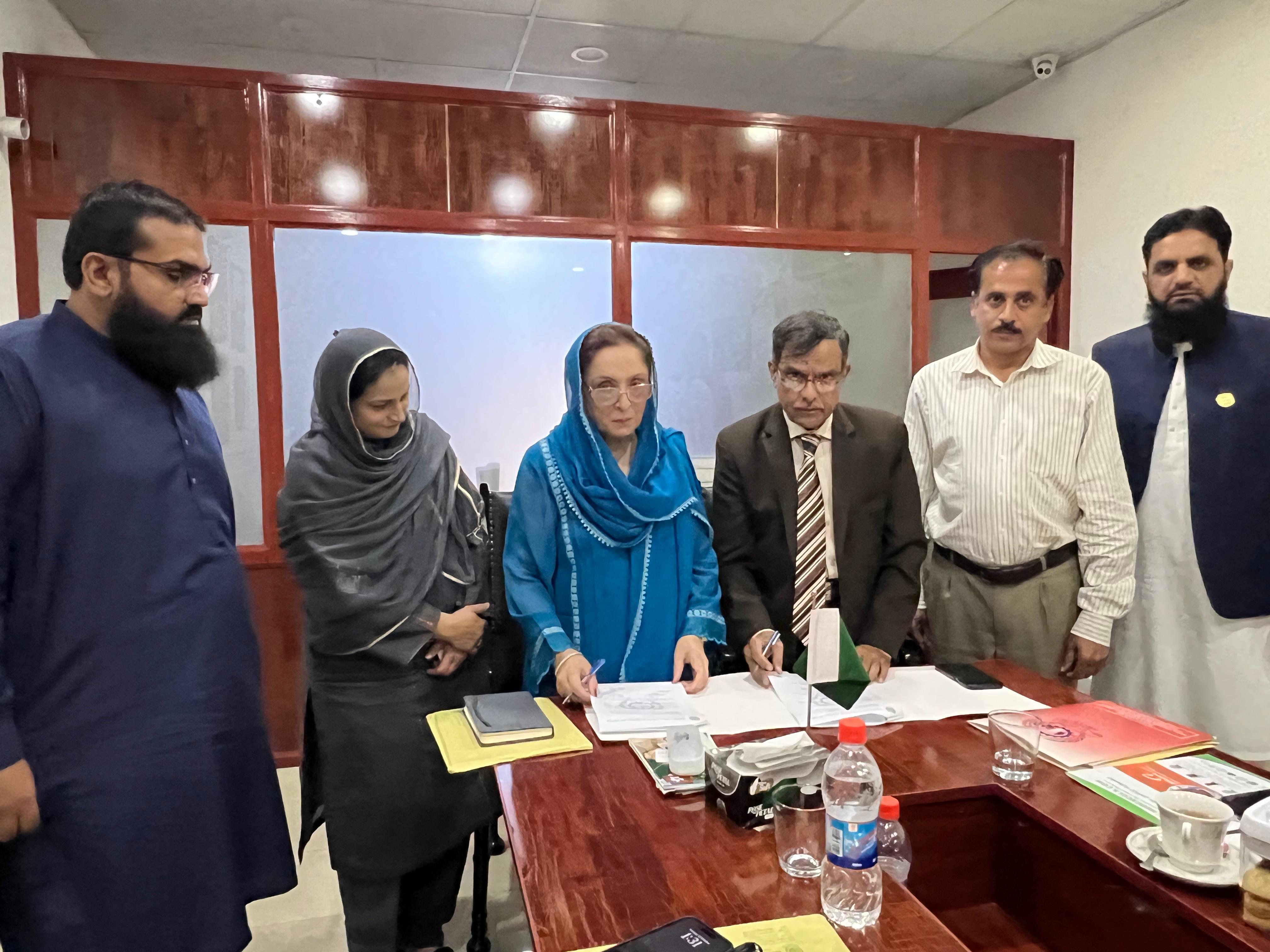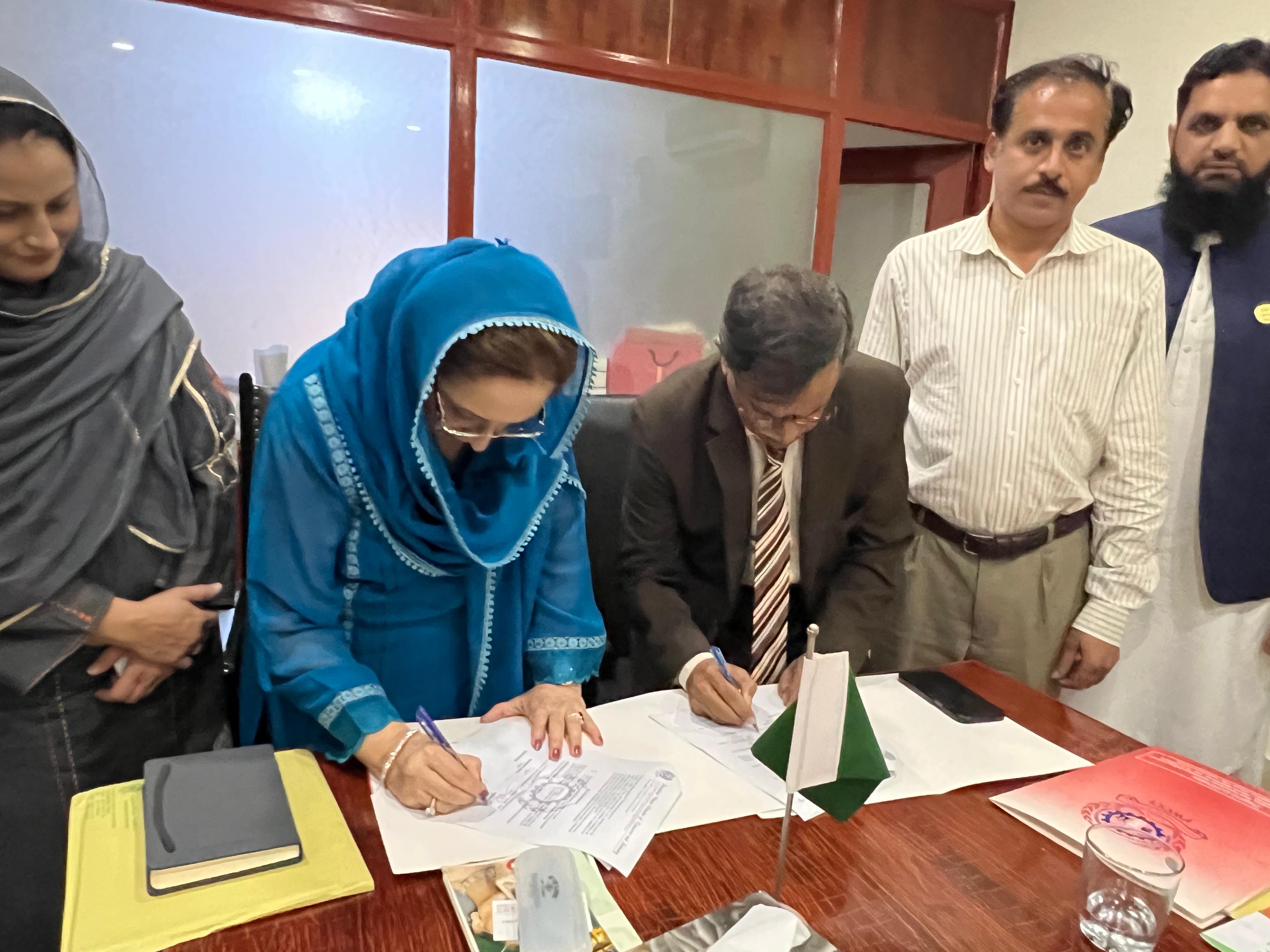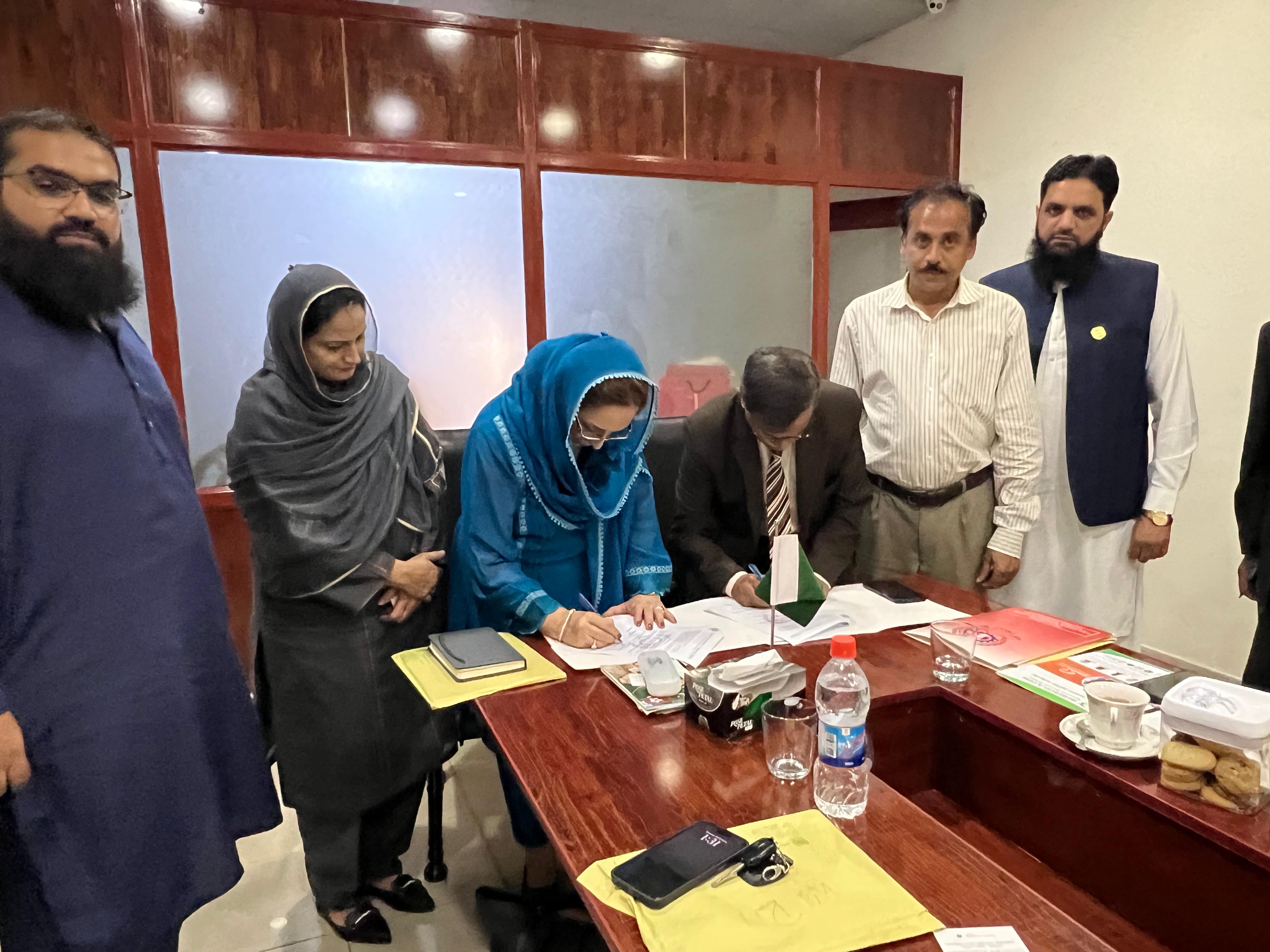 President Faisalabad Women Chamber of Commerce and Rubina Amjad Chairperson of Pakistan Women Export Facilitation Center inked the MoU on behalf of their respective organizations. At the same time, Muhammad Ahmad President of the Gold & Gems Art Promotion Council of Pakistan stamped the document on behalf of his organization.